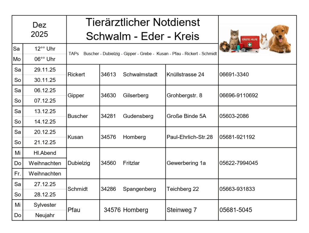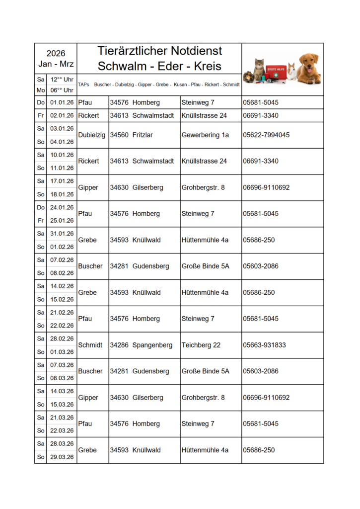 Eine spontane Neuvergabe des Termins für ein anderes Tier ist nicht möglich.