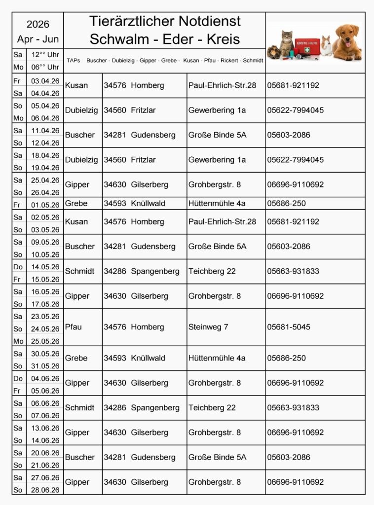 Liebe Patientenbesitzer*innen, hier kommen schon einmal zwei Änderungen zu den Öffnungszeiten unserer Praxis in diesem Jahr (2026):